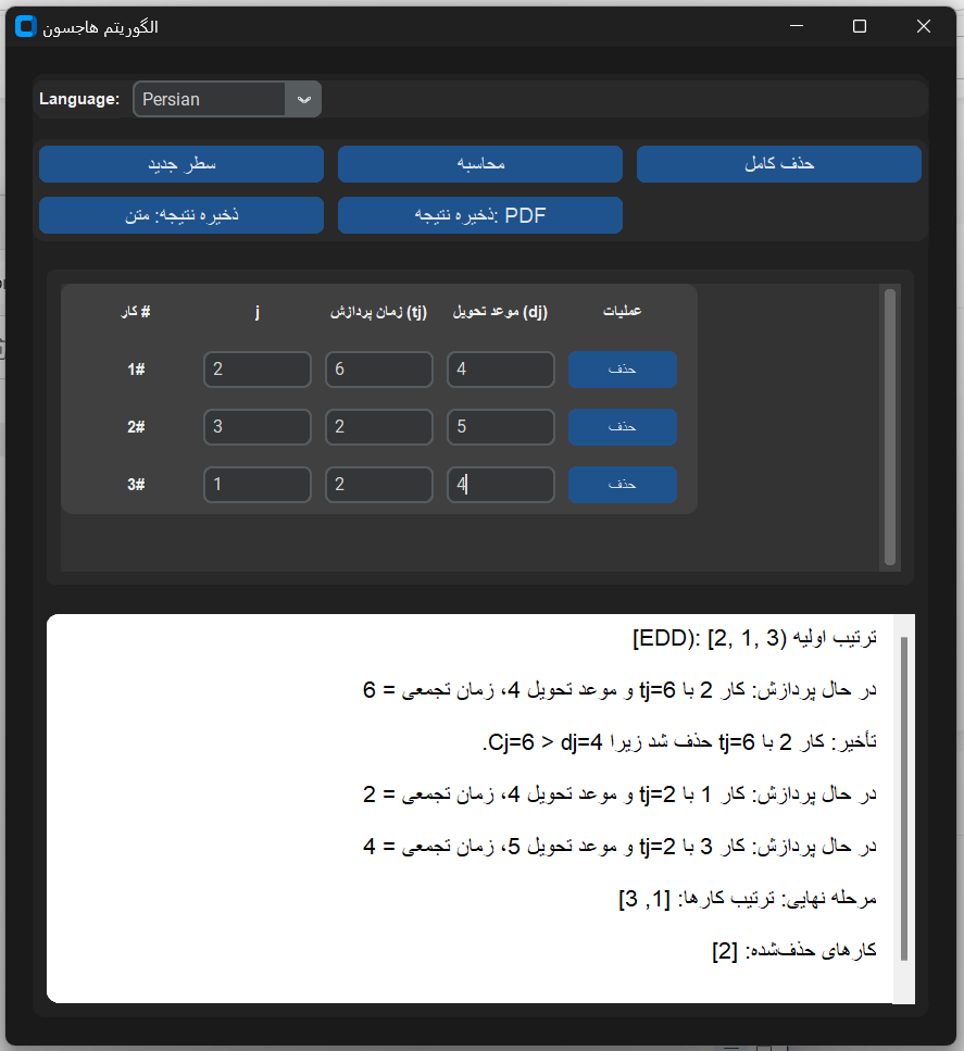 این ابزار نه تنها برای دانشجویان و پژوهشگران ارزشمند است، بلکه برای هر علاقهمند به بهینهسازی و زمانبندی فرصتی فراهم میکند تا الگوریتم هاجسون را به شکلی عملی و ملموس تجربه کند.